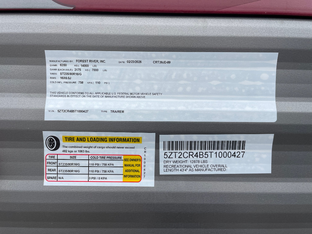 We have made every effort to ensure accuracy in the information provided. Specifications, equipment, technical data, photographs and illustrations are based on information available at time of posting and are subject to change without notice. To receive or verify current product information, please contact the dealership. FreedomRoads LLC, its related dealerships and technology partners are not responsible for typographical errors in price or errors in description of condition of a vehicle's listed equipment, accessories, price or warranties. Any and all differences must be addressed prior to the sale of this vehicle. Decision to sell an RV regardless of price is solely determined by the selling dealer.